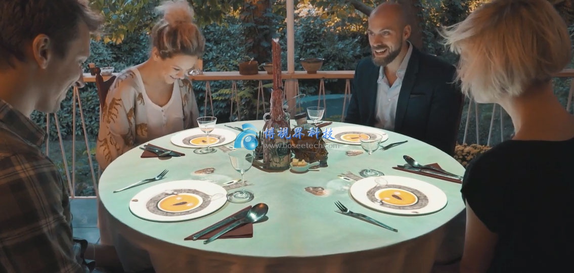 就餐前先來一頓視覺大餐吧! 通過裸眼3D投影技術在餐桌上投射出3D短片,不需要佩戴眼鏡即可體驗3D效…
